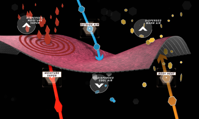 Insulation that actively regulates warm and cool air – no more taking layers on and off during stop-start journeys or in fast-changing temperatures.