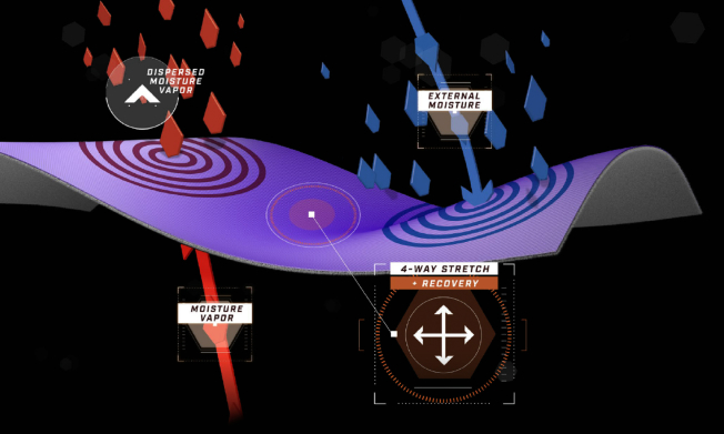 Shapes itself to the way you move while pulling moisture away from your body. So you can stay limber over crags and clefts.