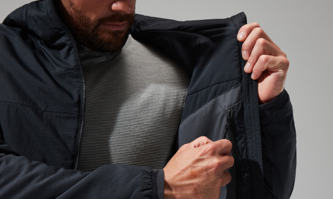 Can look like extra-puffy natural down. Or something more sleek. But it’s made entirely from synthetic fibres and uses 100% recycled materials. It’s toasty. It’s breathable. It’s nice and light. And you’ll reach for it when heading out the door.